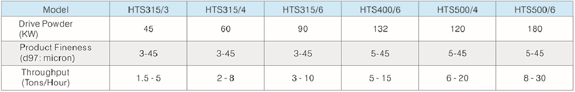 產(chǎn)品粒度范圍D50:1~45μm,最大產(chǎn)量為30t/h;