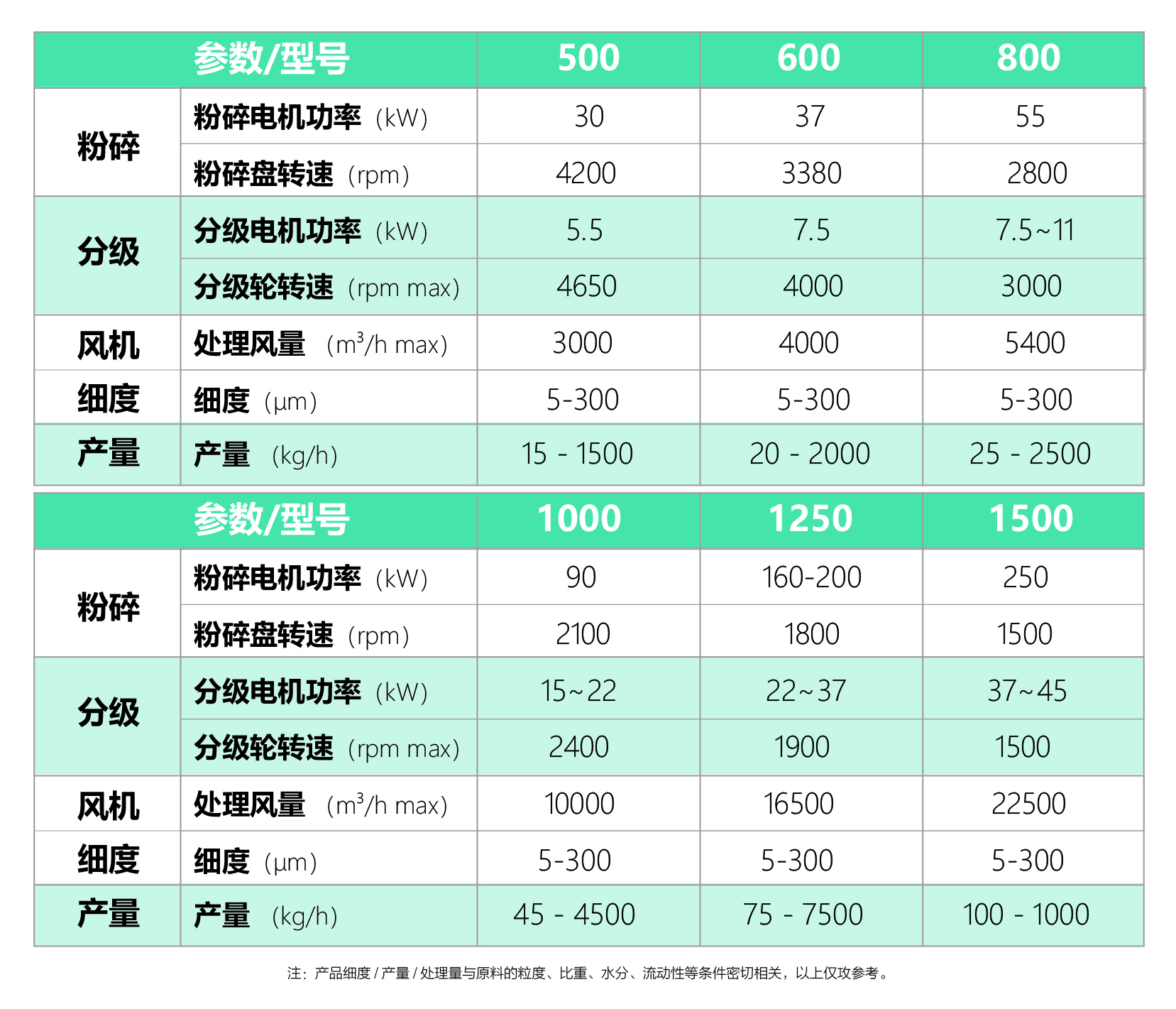 結(jié)構(gòu)緊湊,易拆裝清洗,低成本設(shè)計(jì),粉碎分級(jí)一體化,通過(guò)調(diào)整分級(jí)輪獲得理想的產(chǎn)品顆粒,適用于D50:3~45μm之間的產(chǎn)品粉碎。